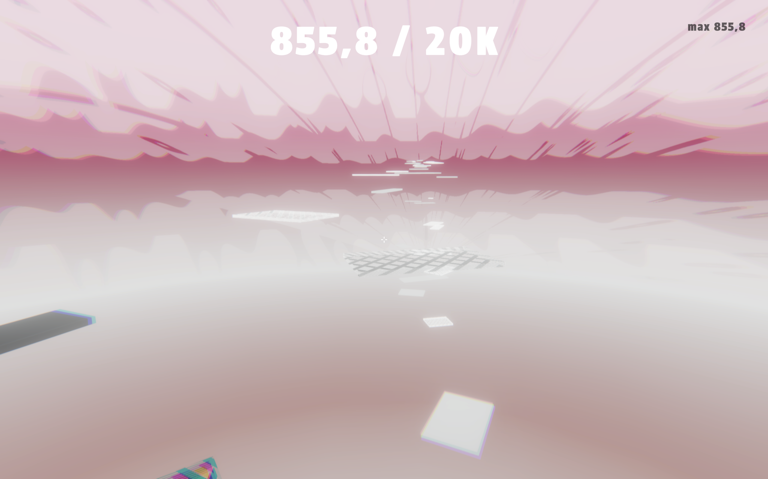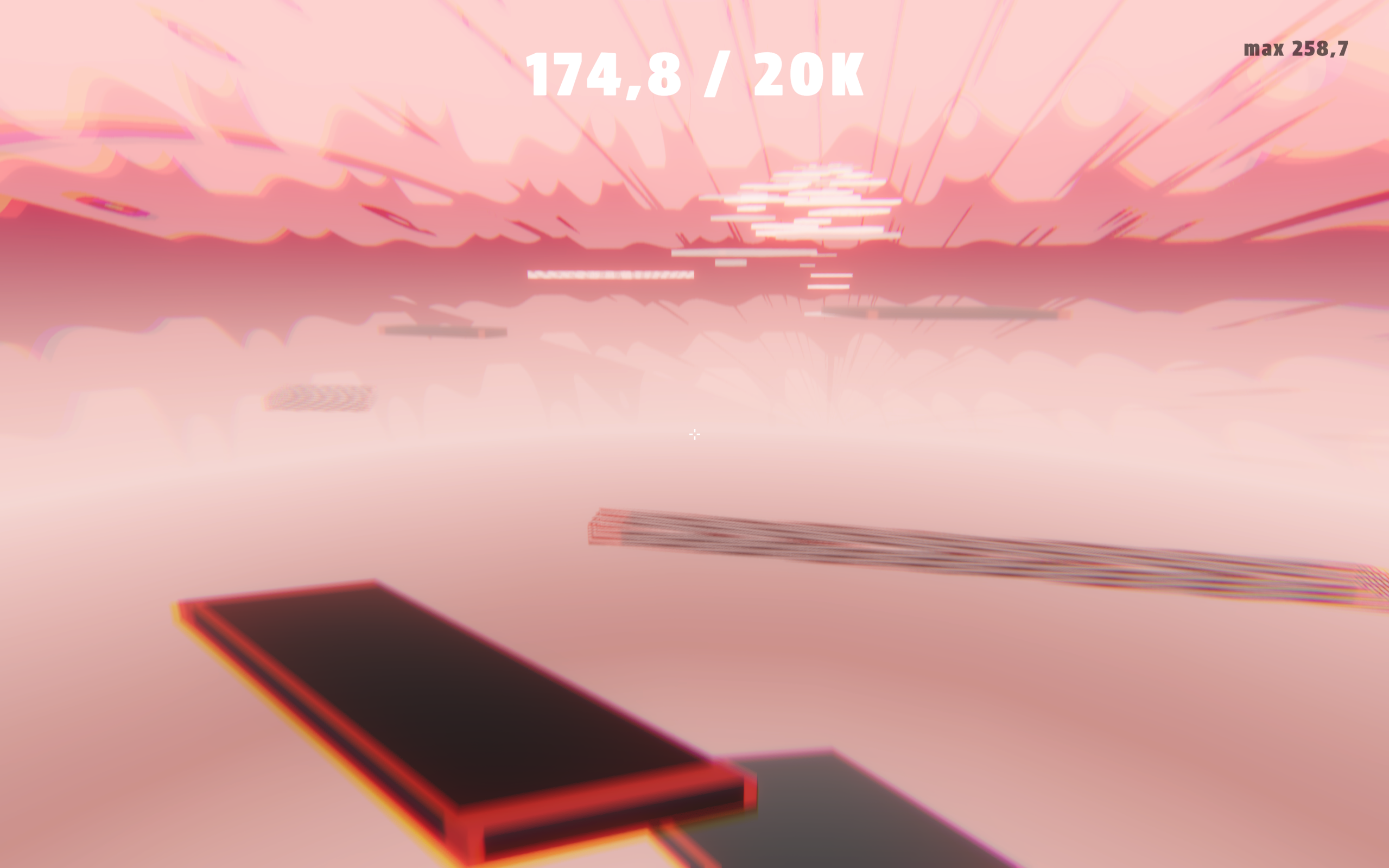 Basically it's a FPS runner\platformer. But it has 1 unique feature - platforms scales by the speed of the player. It creates pretty interesting, trippy visuals and more over it's directly affects gameplay. I found it kinda cool. I made this game solo using only Unity inbox stuff in under 7 or 8 hours, so don't be too picky.